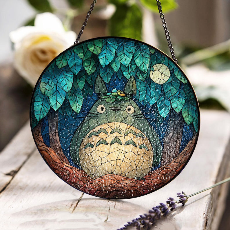 Anime Lover Hobby Stained Glass, Ghibli Fan Suncatcher, Gift For Friends Window Hanging, Kids Room Decor Stained Glass, Birthday Gift Idea