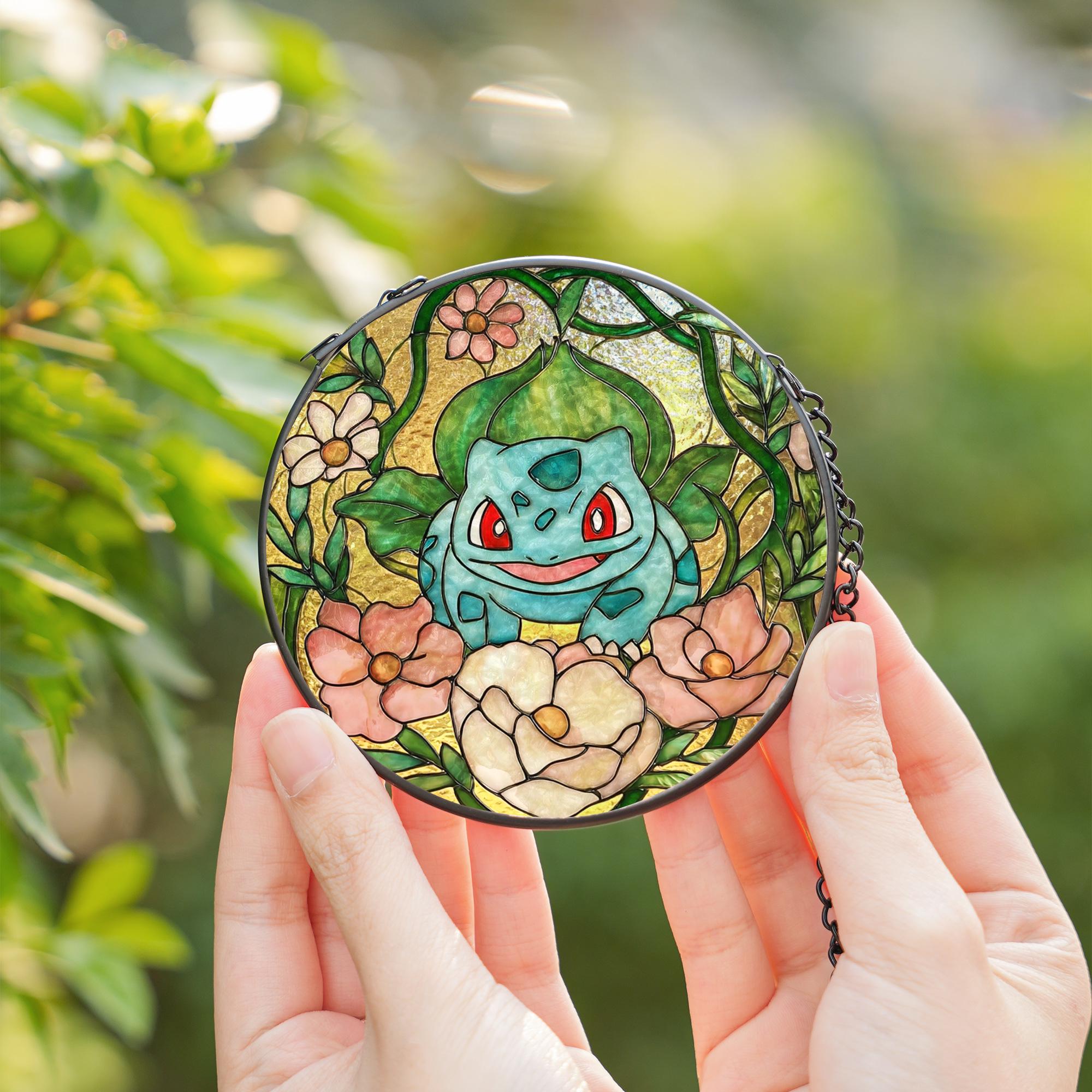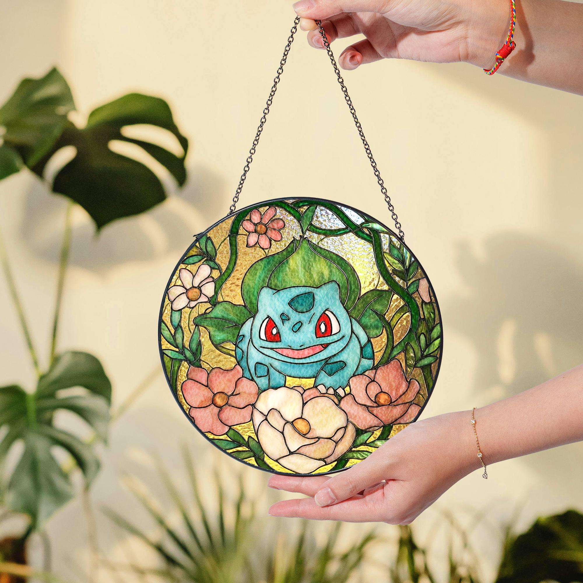 Bulbasaur Stained Glass Suncatcher: Anime Window Hanging