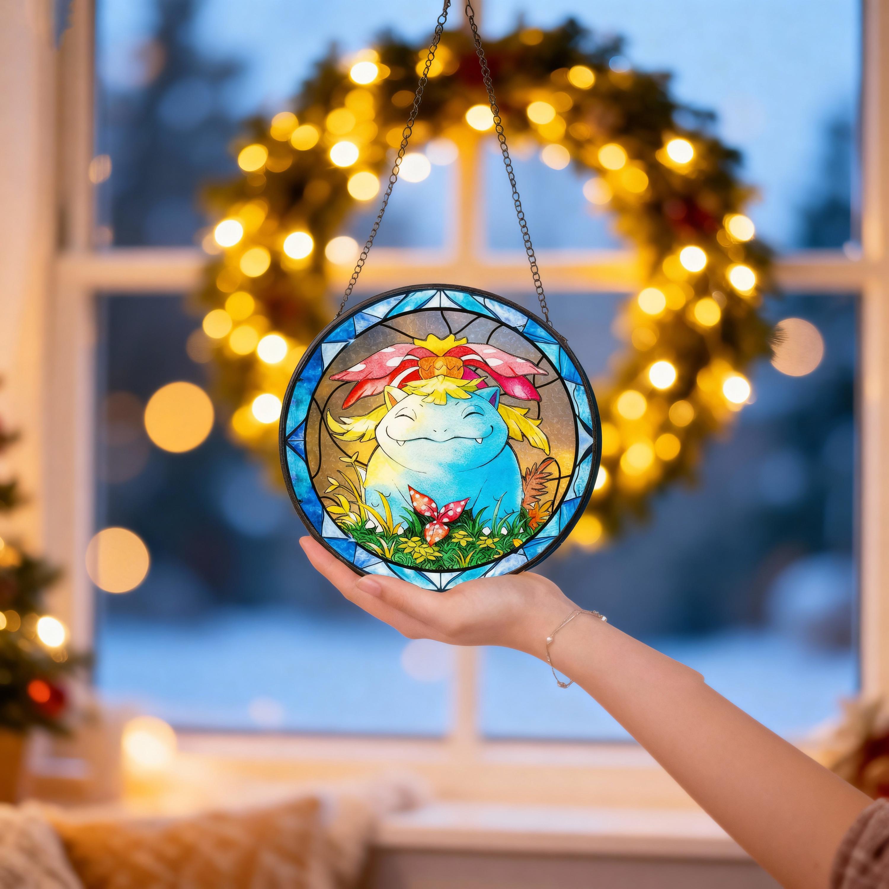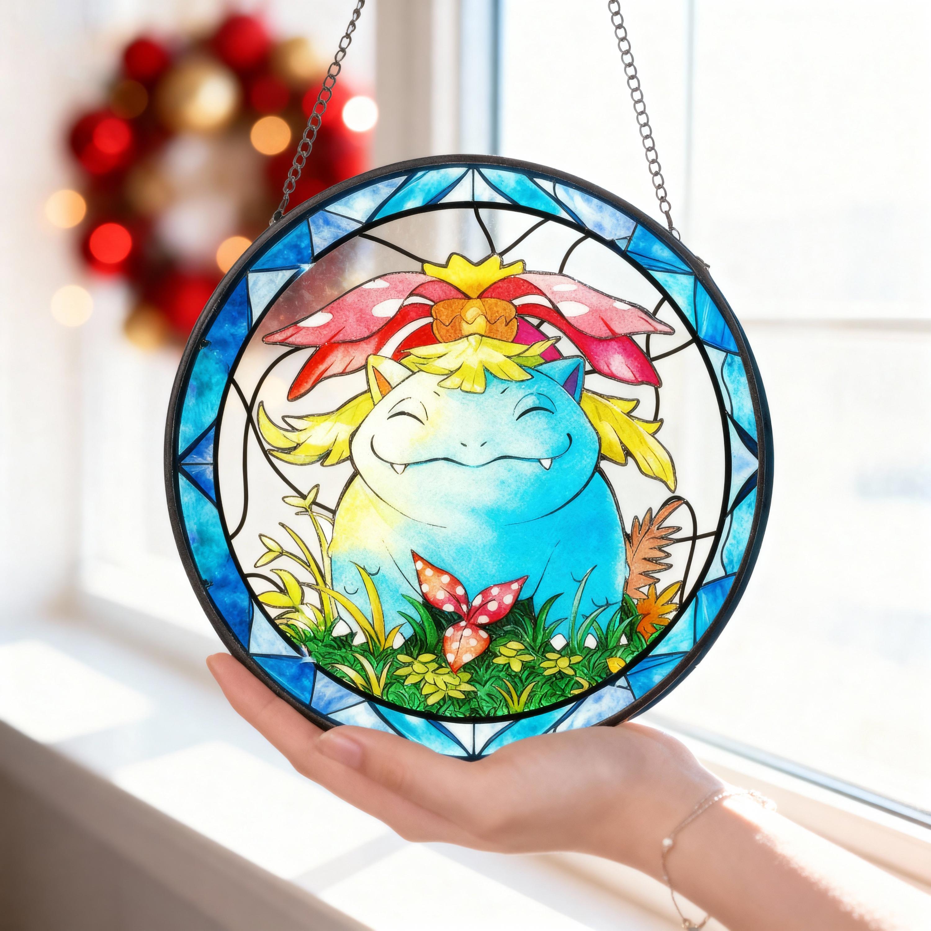 Bulbasaur Stained Glass Suncatcher, Anime Window Hanging, Kids Room Decor