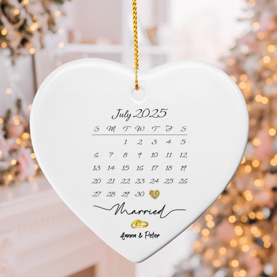 Married Calendar Ceramic Heart Ornament
