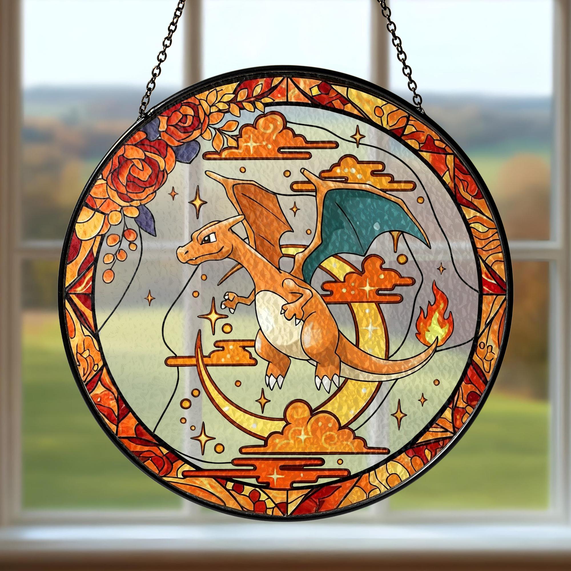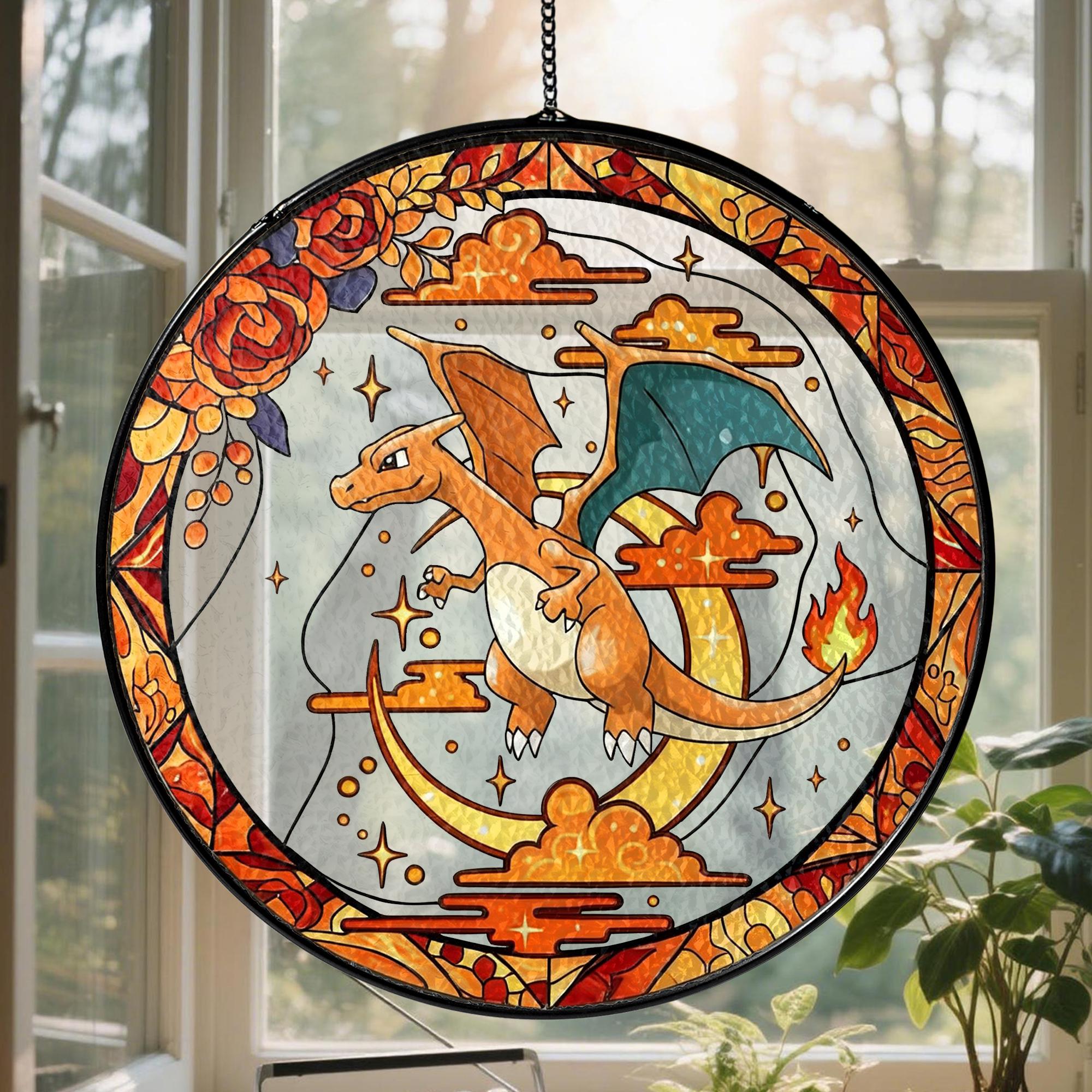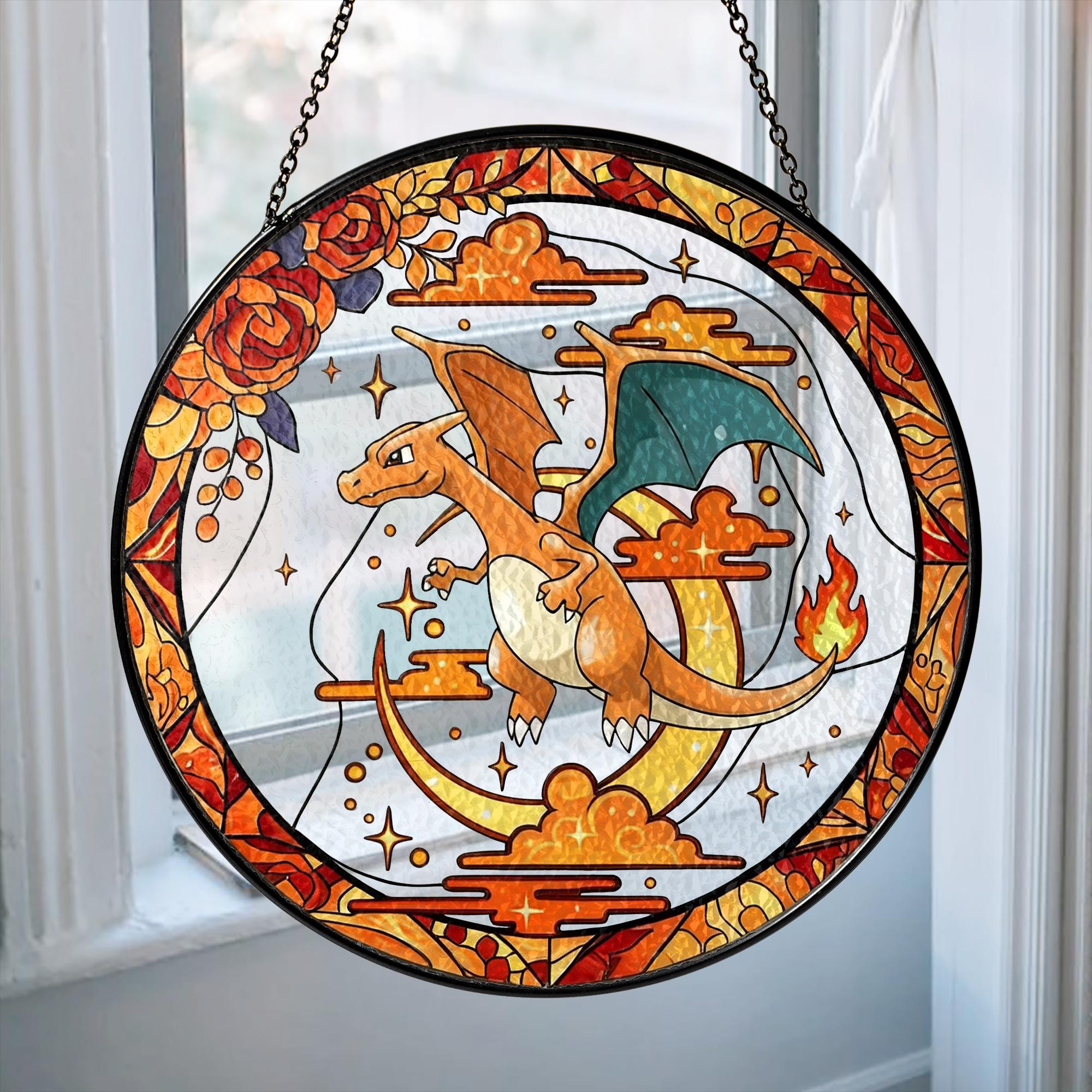 Charizard Stained Glass Suncatcher, Pokemon Window Art, Haunted Garden Home Decor Gift, Pokemon Fan Decor, Window Suncatcher