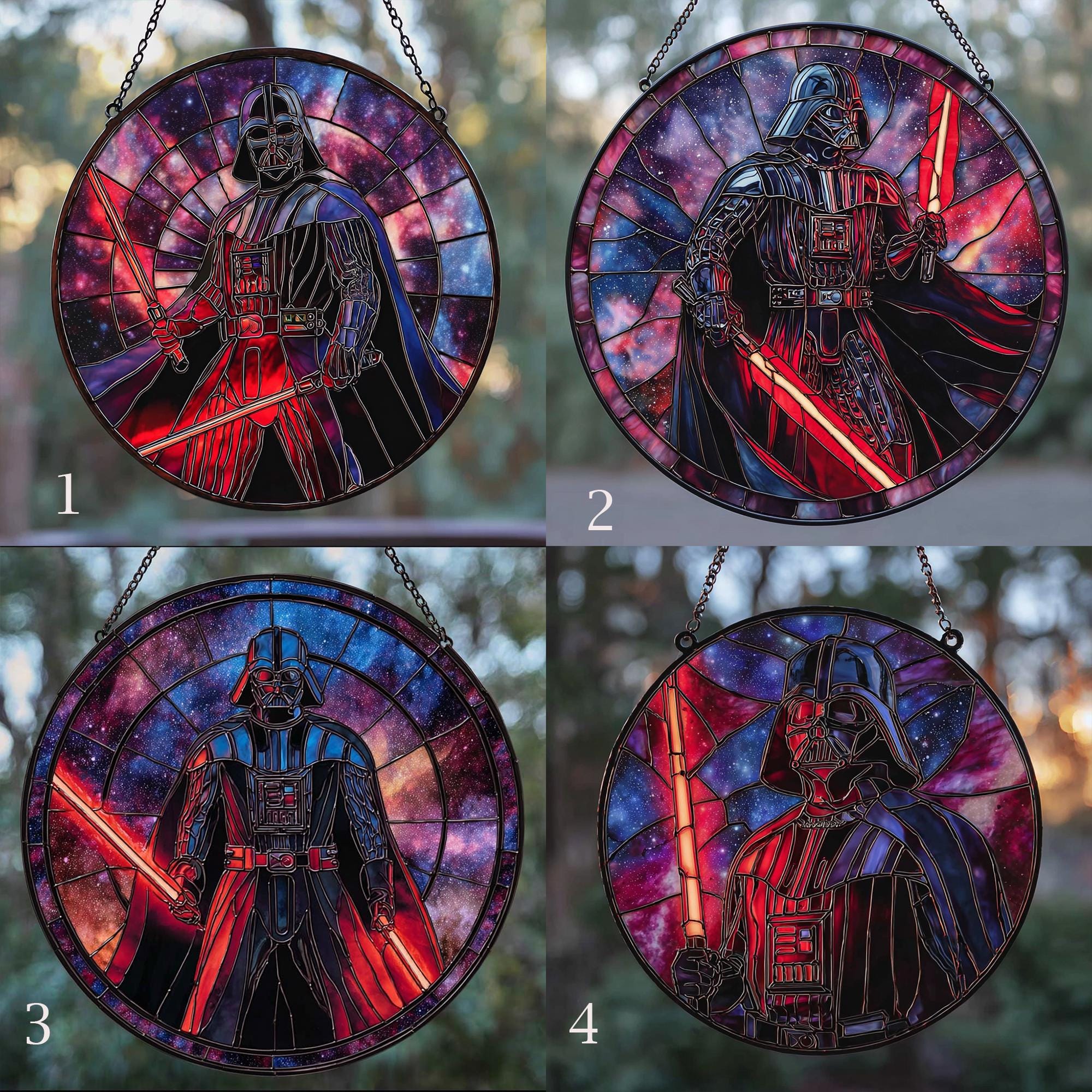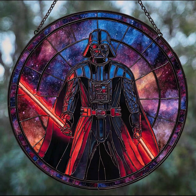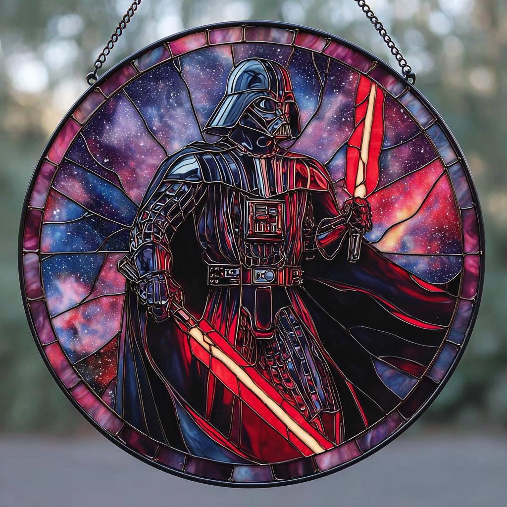 Darth Faux Stained Glass Suncatcher Window Hanging, Sci Fi Galaxy Decor for Him, Dark Side Home Decor Gift