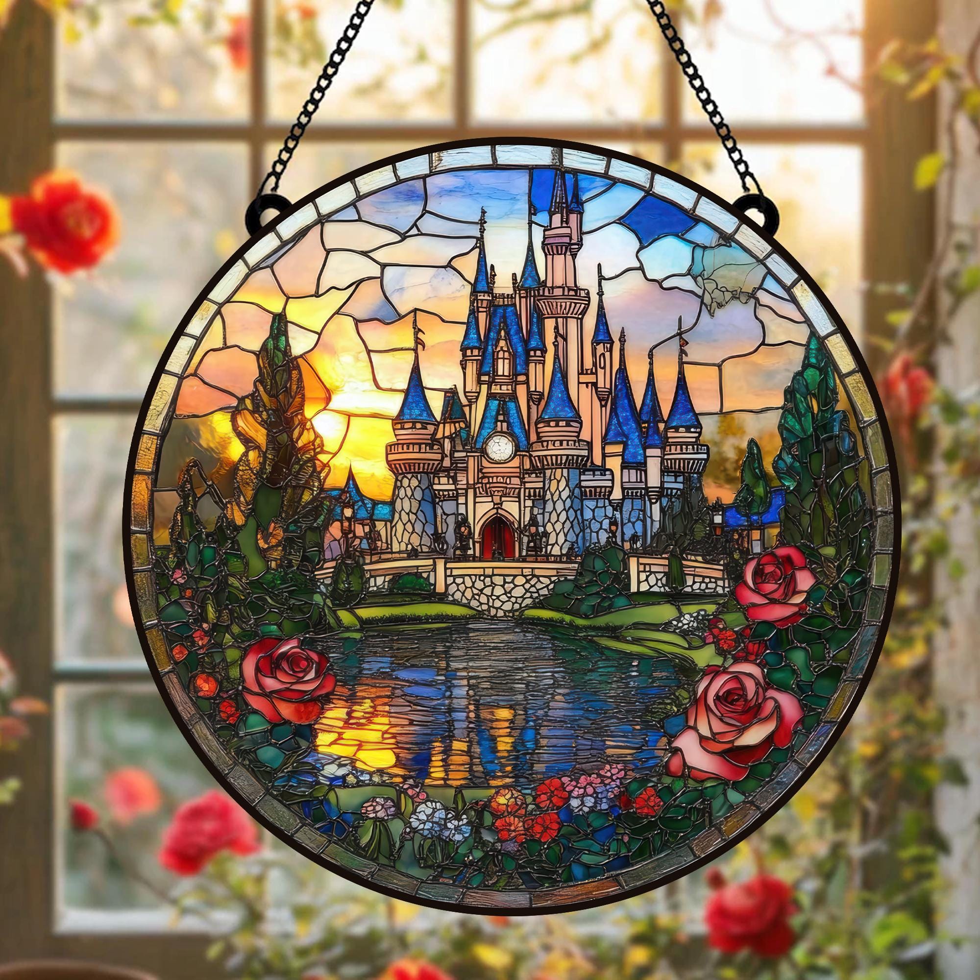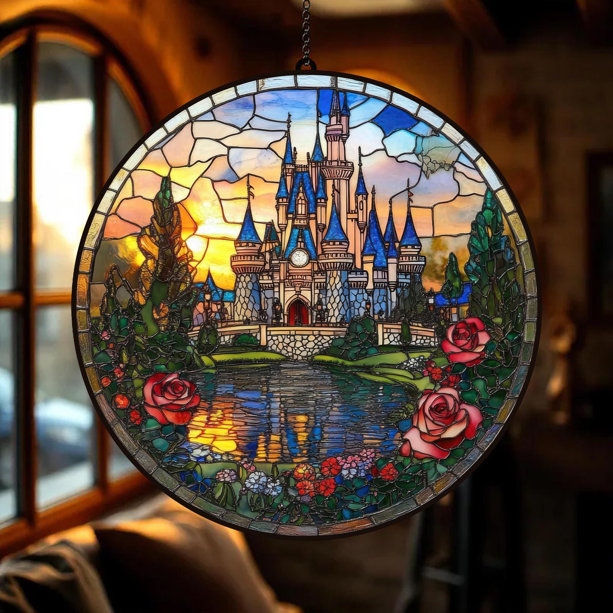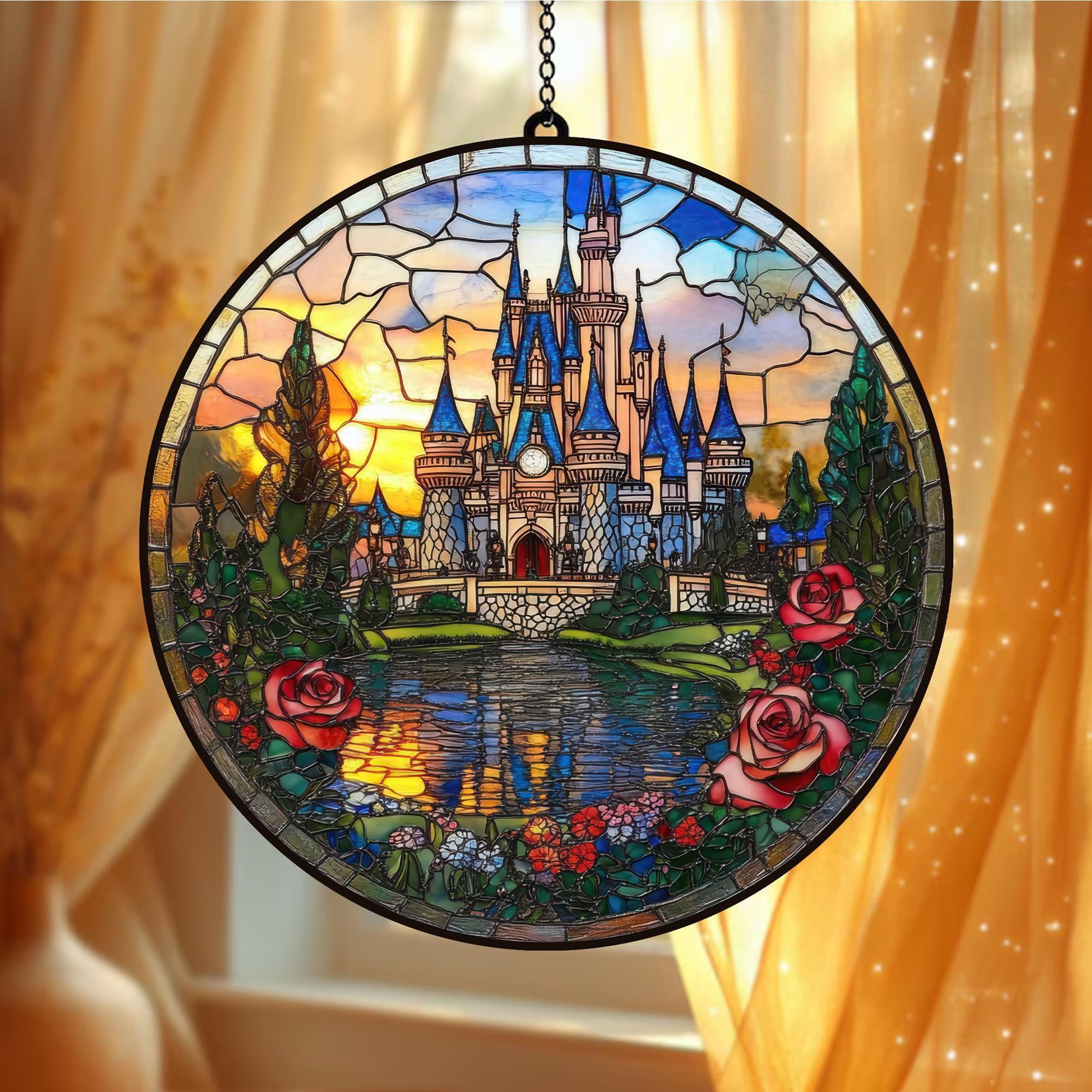 Disneyland Castle Stained Glass Suncatcher, Disney Fan Window Decor Magical Kingdom, Window Gifts Suncatcher, Magic Kingdom Suncatcher Gift
