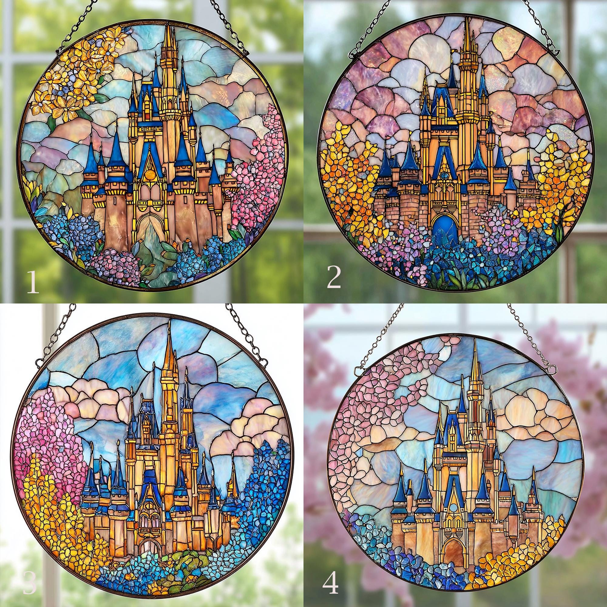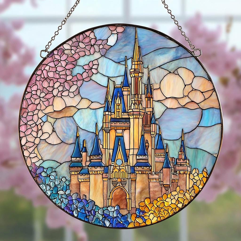 Disneyland Castle Stained Glass Suncatcher, Magical Kingdom Window Hanging Decor, Disney Fan Window Decor Magical Kingdom, Window Gifts