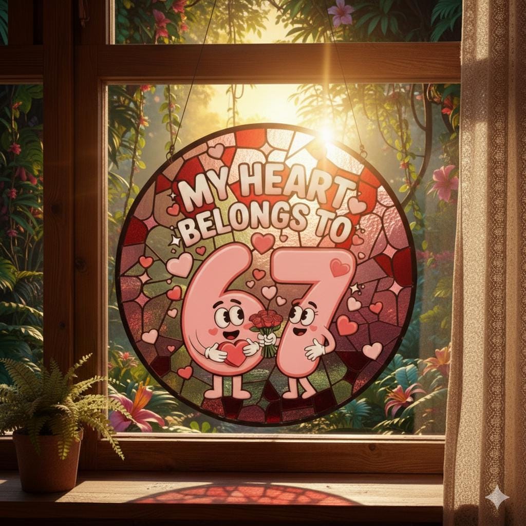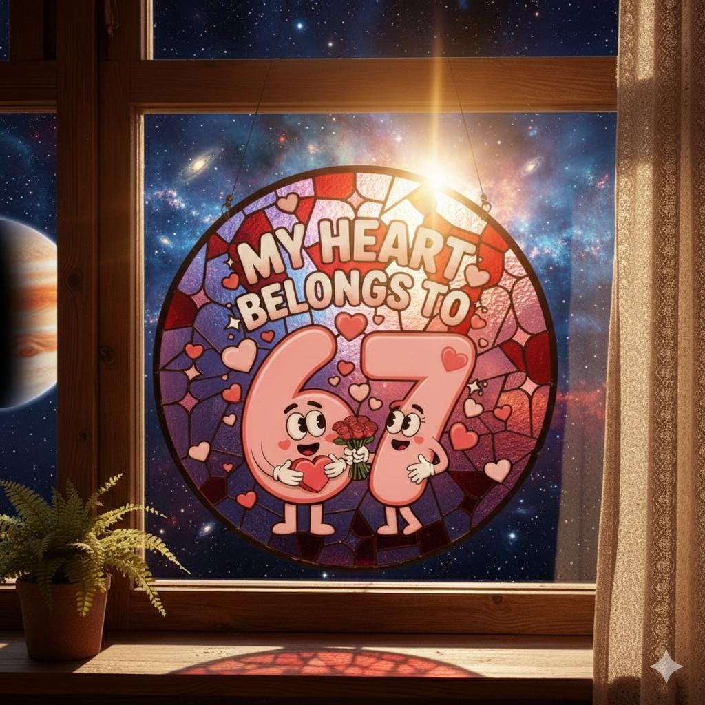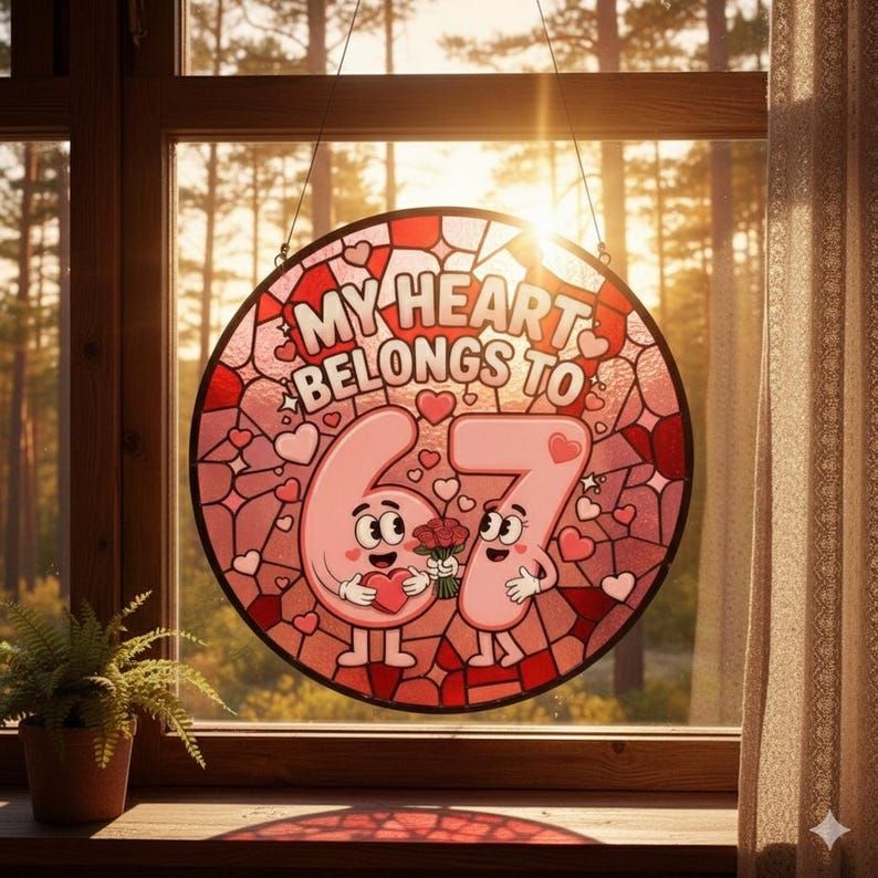Glass Suncatcher - Six Seven Lovers Window Hanging Decor, Stained Glass Style, Acrylic Suncatcher Valentine, Gift for Couple