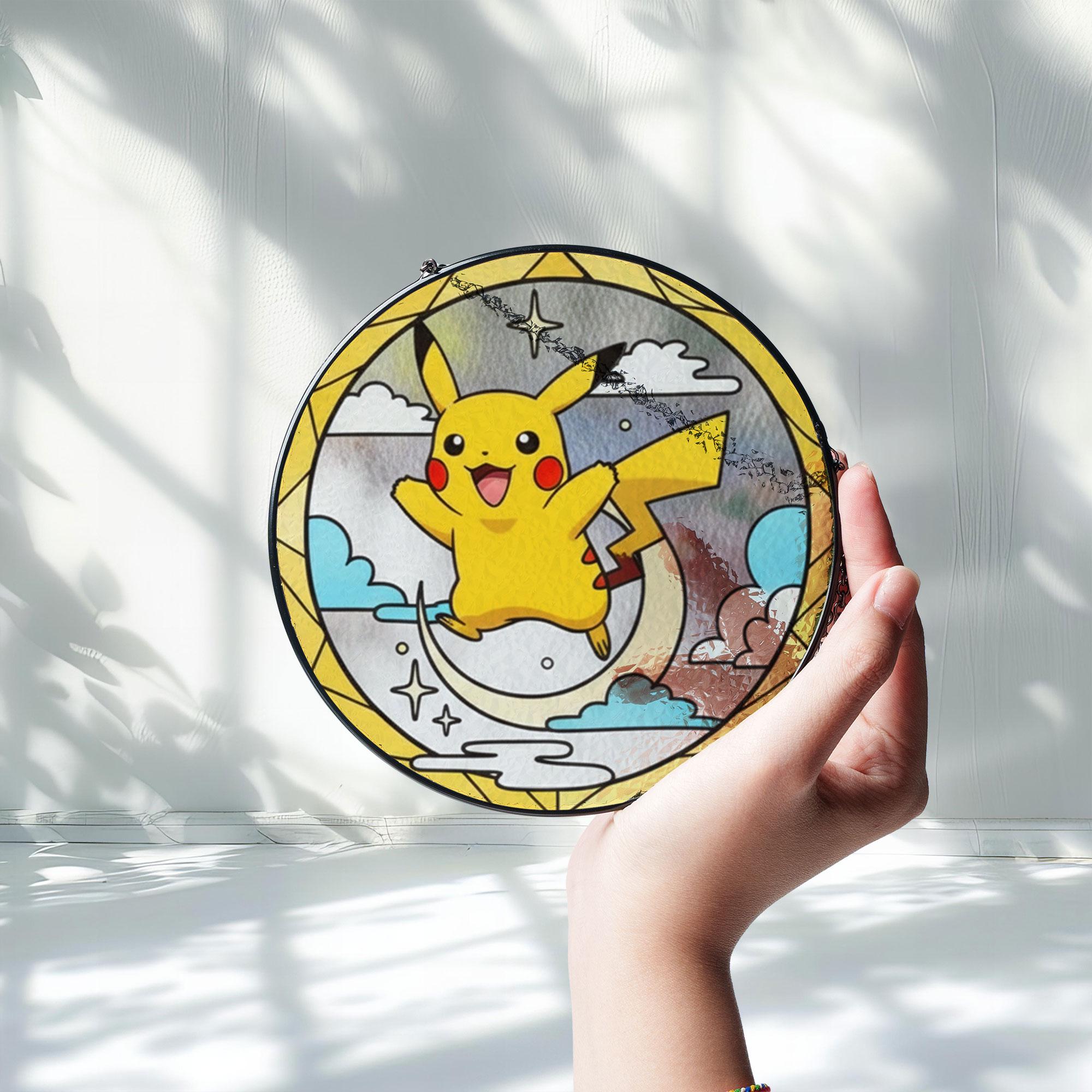 Pikachu Acrylic Suncatcher Ornament, Cute Pokémon Window Hanging Decor, Anime Fan Gift, Stained Glass Style Suncatcher