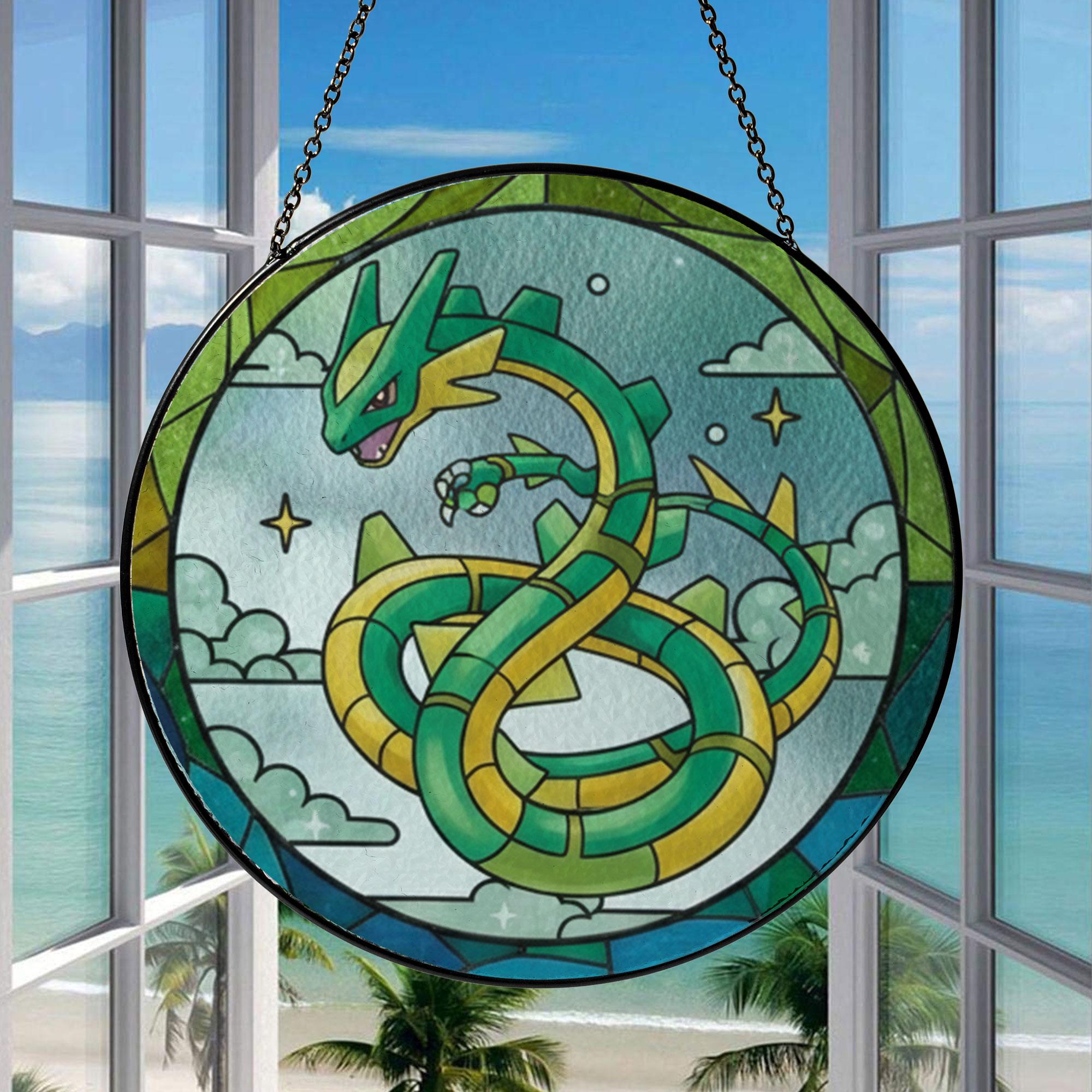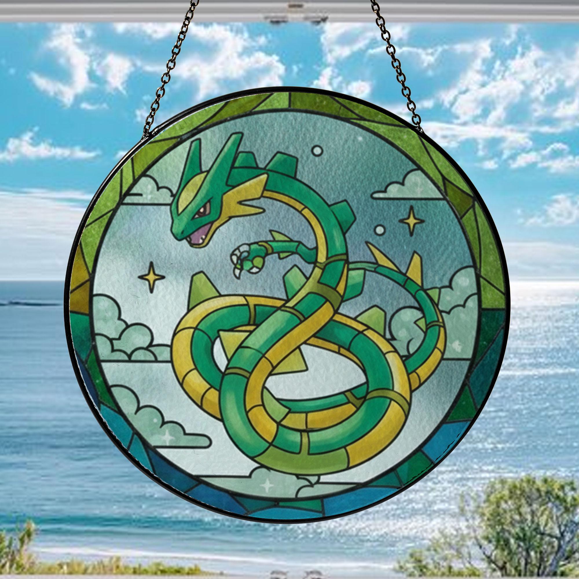 Rayquaza Acrylic Suncatcher Ornament, Legendary Pokémon Window Hanging, Anime Fan Gift, Stained Glass Style Decor