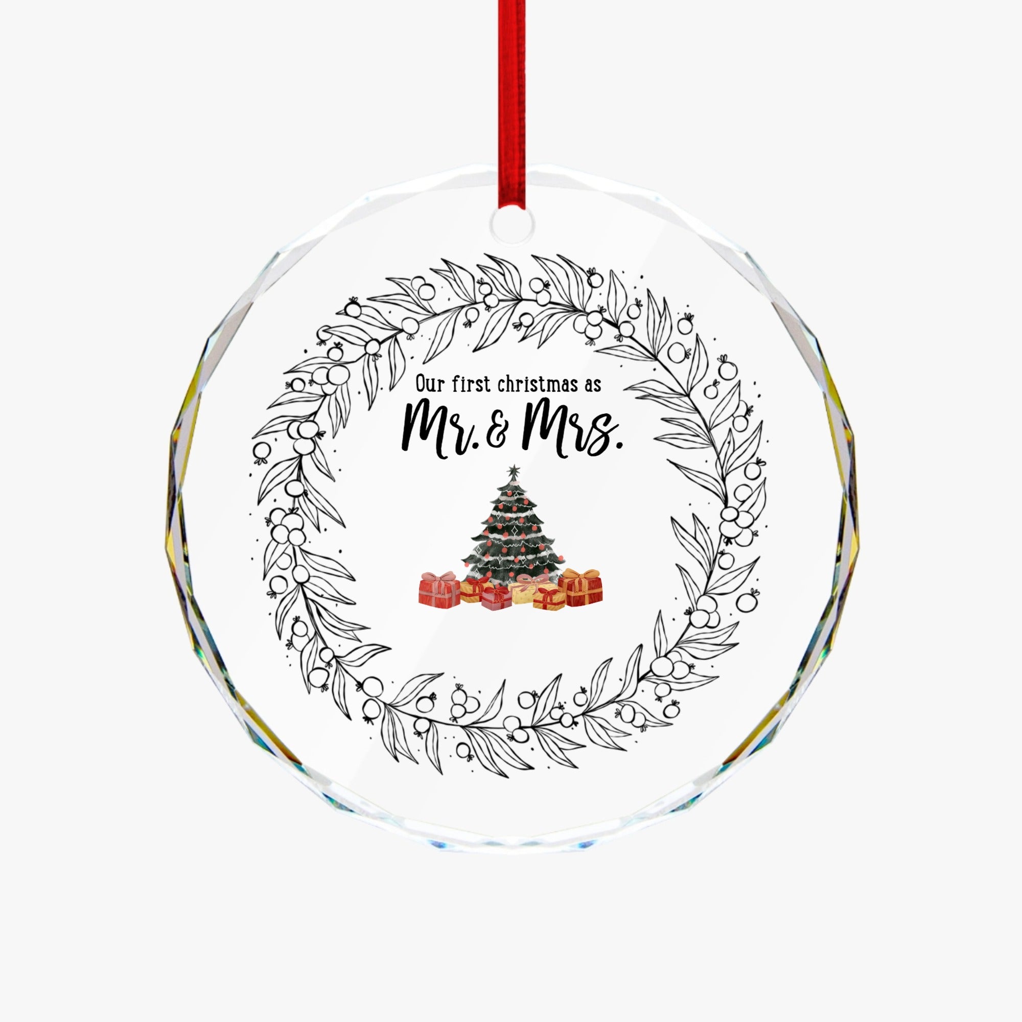The round-shaped design and the light reflected from the edges makes this product simple and exquisite.Crafted from high-quality glass, it is thin and lightweight yet not fragile. Equipped with a red hanging ribbon, it can be used as a decorative item and hung anywhere. It is perfect not only as a decoration for Christmas or other festivals but also as a heartwarming gift for family and friends.